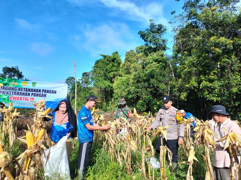 *BHABINKAMTIBMAS HADIRI PANEN JAGUNG KUARTAL IV DI DESA SABING KECAMATAN TELUK KERAMAT*