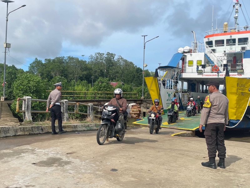 Personel Polsek Paloh lewat Bhabinkamtibamas dan anggota piket SPKT melakukan patroli pantau arus lalu lintas sungai di pelabuhan sungai sumpit-ceremai desa sebubus kecamatan paloh. Kamis 25/12/25.