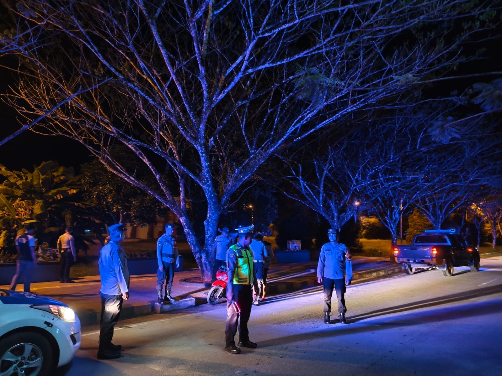 Patroli Skala Besar dipimpin oleh Pamapta Piket Pawas Polres Sambas, Iptu Dwi Hendi W.S., S.H., didampingi Ipda Safri S., serta melibatkan personel gabungan dari berbagai satuan fungsi, antara lain Satlantas, Satsamapta, Satintelkam, Satresnarkoba, Satreskrim, Si Propam, dan Pamapta.
