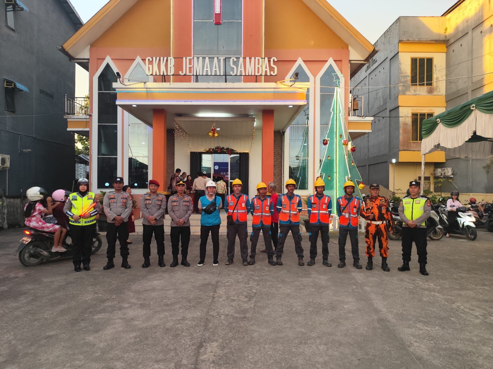 Dalam pelaksanaan pengamanan, Polsek Sambas didukung oleh personel Polres Sambas, unsur TNI, Dinas Perhubungan, Satpol PP, serta organisasi kemasyarakatan Pemuda Pancasila. Personel gabungan tersebut disiagakan untuk melakukan penjagaan, pengaturan lalu lintas, serta patroli di sekitar lokasi gereja.