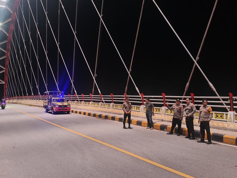 *Polsek Tekarang dan Polsek Tebas Intensifkan Patroli Pada Malam Minggu di Jembatan Sungai Sambas Besar, Jaga Keamanan Wilayah*