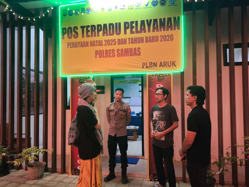SAJINGAN BESAR – Personel Kepolisian Sektor Sajingan Besar yang bertugas di Pos Pelayanan Terpadu