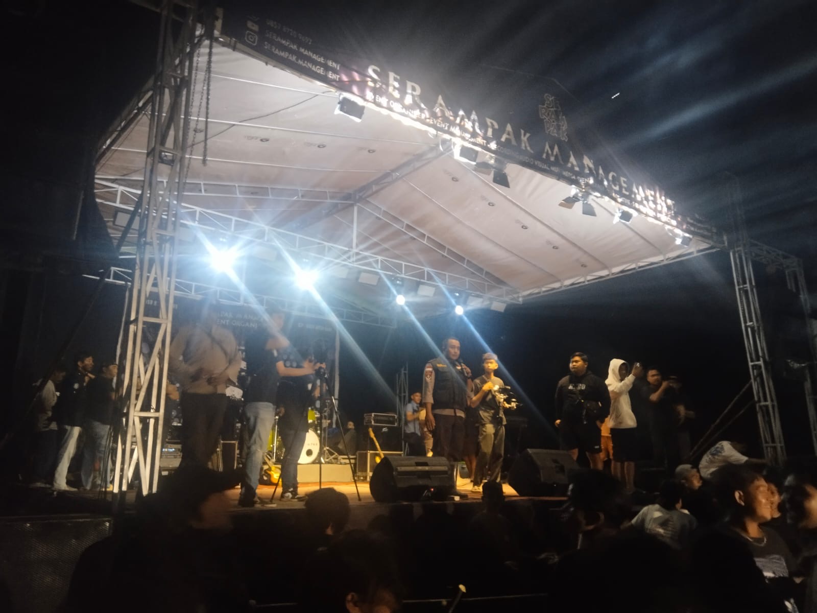 Personel Polsek Sejangkung sudah dikerahkan ke lokasi untuk melaksanakan pengamanan di berbagai titik strategis. Beberapa anggota ditempatkan di sekitar area panggung utama, area parkir, dan jalur keluar masuk lokasi acara. Langkah ini dilakukan untuk memastikan seluruh rangkaian kegiatan dapat berjalan aman, tertib, dan kondusif sejak awal hingga akhir pertunjukan.