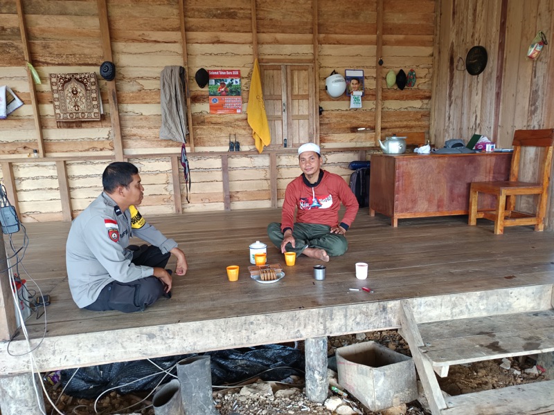 Bhabinkamtibmas Temajuk Polsek Paloh Sambang Warga Sampaikan Imbauan Kambtibmas