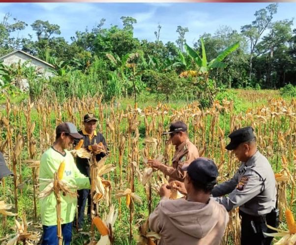 Dukung Swasembada Pangan, Polsek Sambas Kawal Panen Perdana Jagung Hibrida di Desa Sepuk Tanjung.