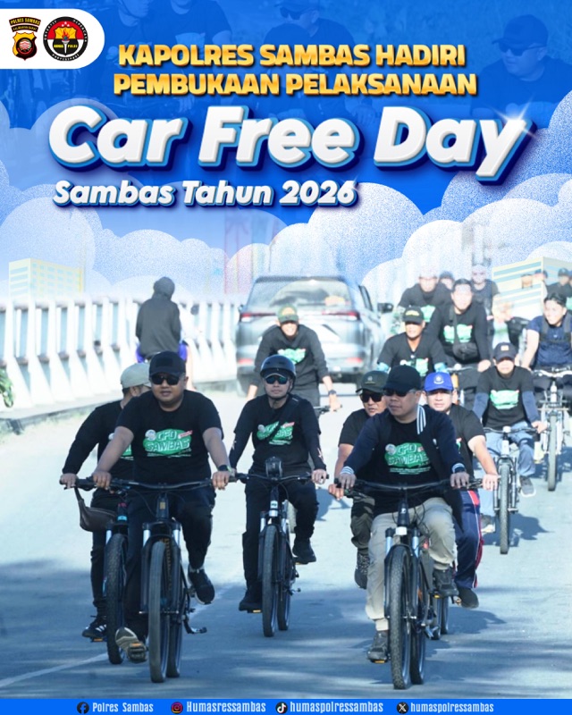 Polres Sambas, Polda Kalbar – Pemerintah Kabupaten Sambas meresmikan kembali Pelaksanaan Car Free Day (CFD) Sambas Tahun 2026, sebagai wujud komitmen membangun masyarakat sehat dan ekonomi lokal yang mandiri. Kegiatan yang digelar di kawasan kompleks perkantoran Pemda Sambas pada Minggu (18/01/2026) pagi.