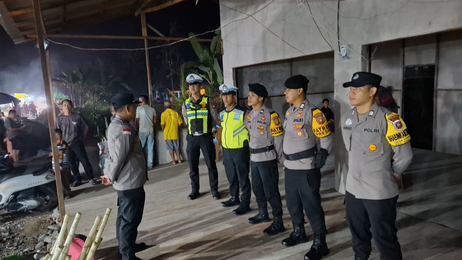 Kegiatan pengamanan yang dilakukan pada malam hari tersebut dipimpin langsung oleh perwira pengendali di lapangan dengan melibatkan personel dari berbagai fungsi untuk memantau situasi di lokasi acara yang dihadiri oleh ratusan warga setempat.
