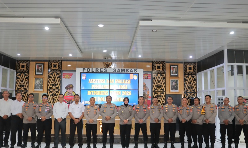 Polres Sambas, Polda Kalbar – Dalam rangka memperkuat komitmen reformasi birokrasi dan meningkatkan kualitas pelayanan publik, Polres Sambas menyelenggarakan kegiatan Asistensi dan Evaluasi Pembangunan Zona Integritas (ZI) Tahun 2026 dari Rorena Polda Kalbar. Kegiatan ini berlangsung di Aula Dhira Wijaya Polres Sambas pada Senin (26/1/2026) pagi.