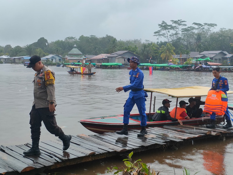 * Pengamanan Jalur Air: Personil Sat Airud Polres Sambas menyisir sungai menggunakan kapal patroli untuk memastikan lintasan balap bebas dari hambatan dan mencegah penonton mendekat ke area pacu yang berisiko kecelakaan.