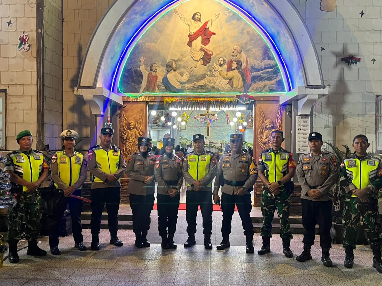 Sinergi Personel Gabungan Amankan Ibadah Malam Tahun Baru di Sejumlah Gereja Wilayah Hukum Polsek Sambas.