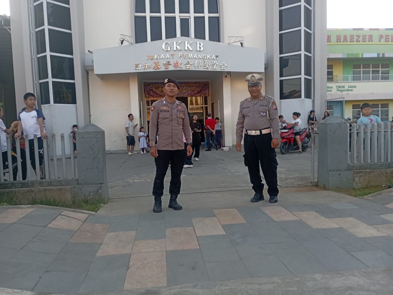 Dalam rangka memastikan keamanan dan kelancaran kegiatan ibadah keagamaan Umat Kristiani, Polsek Pemangkat Polres Sambas melaksanakan patroli di Gereja Paroki Santo Yosef dan GKKB Pemangkat pada Minggu (8/2/2026).