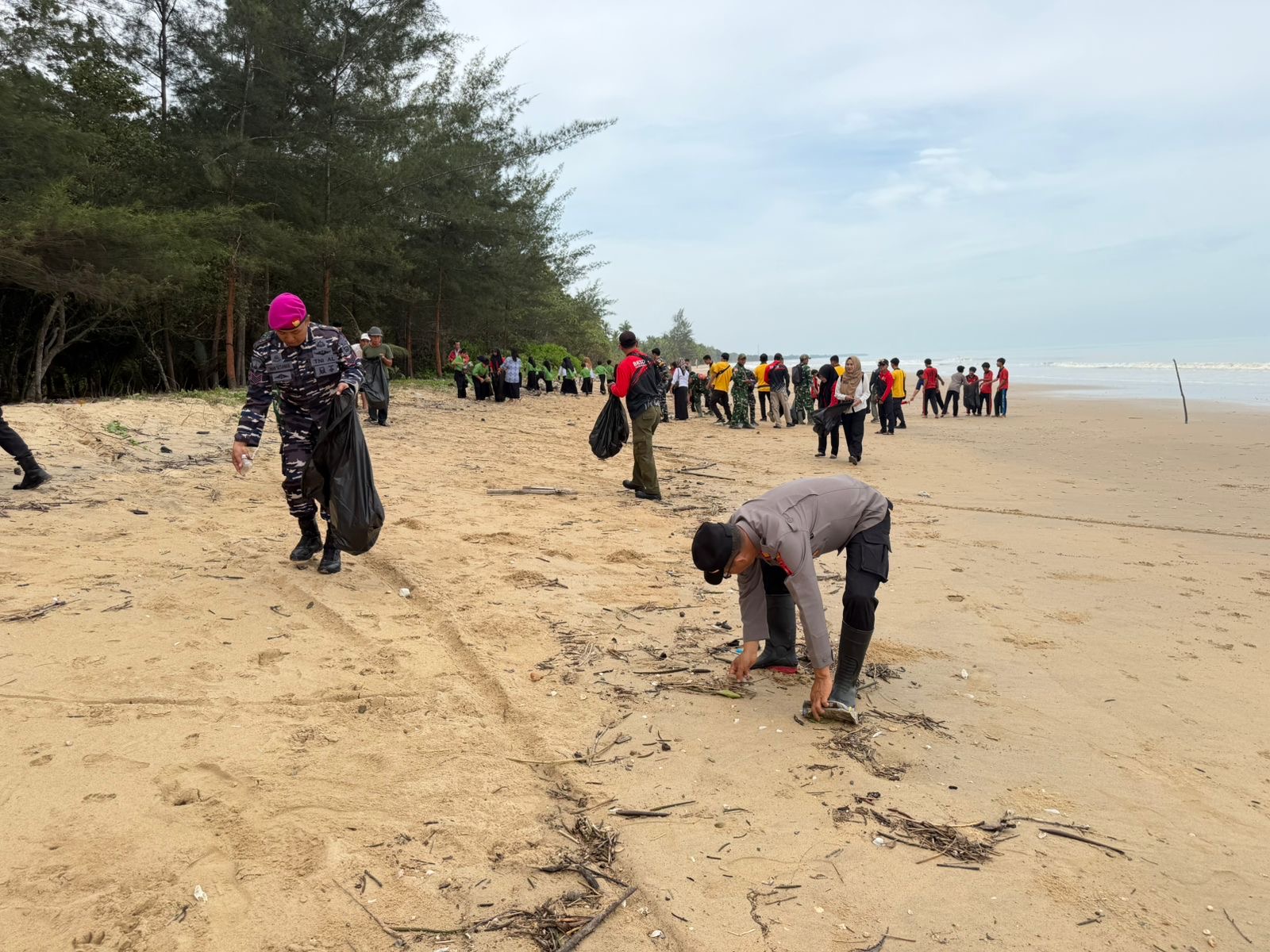 Gabungan Forkopincam Paloh Bersih-Bersih Pantai Dikawasan Pantai Tanah Hitam