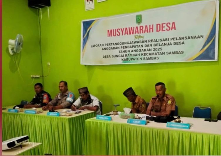 SAMBAS – Dalam rangka mendukung tata kelola keuangan desa yang transparan dan akuntabel, Bhabinkamtibmas Desa Sungai Rambah, Aiptu Masroni, menghadiri kegiatan Musyawarah Desa (Musdes) Laporan Pertanggungjawaban Realisasi Pelaksanaan Anggaran Pendapatan dan Belanja Desa (APBDes) Tahun Anggaran 2025.