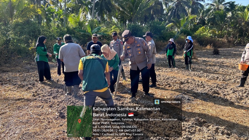 Dalam rangka menguatkan Swasembada Pangan, Kapolsek Pemangkat AKP Ronald Deny Napitupulu, S.H., M.H. pimpin langsung kegiatan penanaman bibit jagung hibrida kuartal 1 Tahun 2026 yang terletak di Dusun Baru Desa Serumpun Kecamatan Salatiga pada Jumat (30/1/2026).