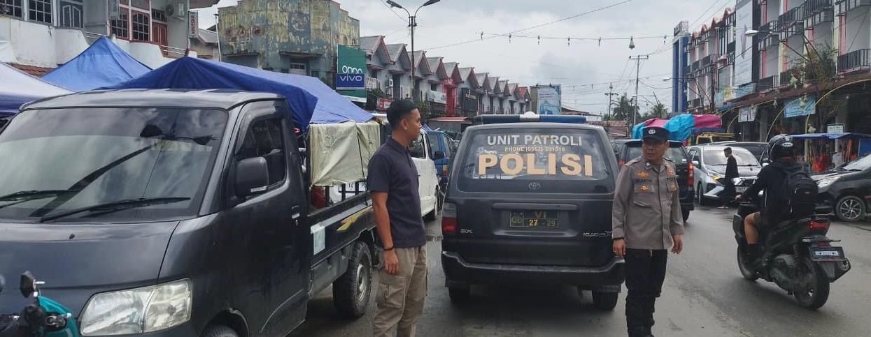 Monitoring Area Pasar Sambas Selain sasaran utama, petugas juga menyempatkan diri melakukan monitoring di kawasan Pasar Sambas. Hal ini dilakukan untuk memantau kelancaran aktivitas ekonomi serta mencegah potensi gangguan kamtibmas di pusat keramaian tersebut.