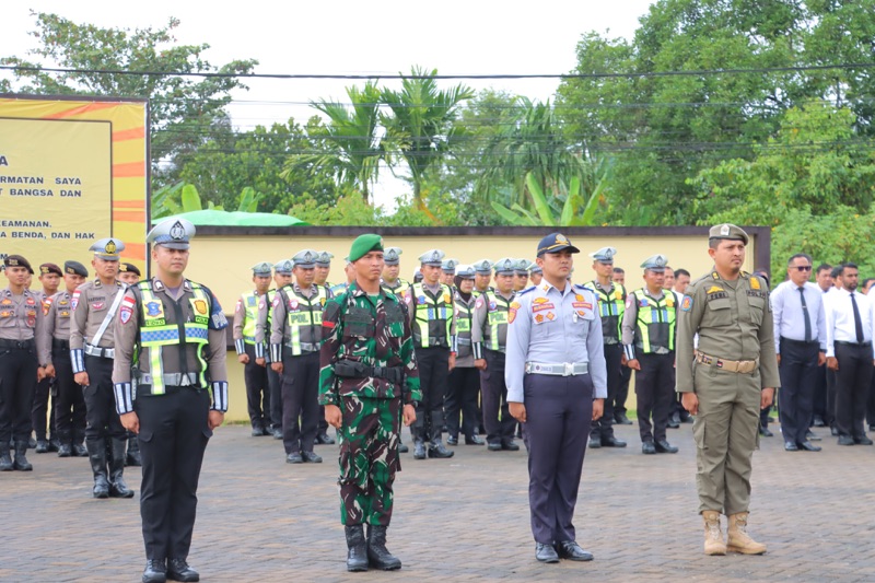 Mewakili Kapolres Sambas AKBP Wahyu Jati Wibowo, S.I.K., S.H., M.H., Wakapolres Sambas KOMPOL Hilman Malaini, S.H., S.I.K., M.H., pimpin pelaksanaan Apel Gelar Pasukan yang dihadiri oleh berbagai unsur Forkopimda, antara lain perwakilan dari DPRD Kabupaten Sambas, Kodim 1208/Sambas, Kejaksaan Negeri, Pengadilan Negeri, Danyonif 645/GTY, serta jajaran instansi terkait seperti Dinas Perhubungan, Satpol PP, dan Jasa Raharja.