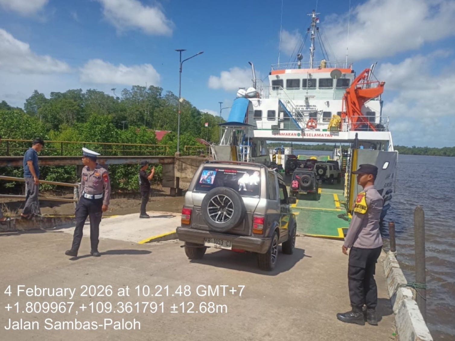 Polda Kalbar Polres Sambas. Polsek paloh melakukan patroli pantau arus lalu lintas air atau sungai di penyeberangan kapal feri maupun bangkong atau perahu di sungai sumpit menuju ceremai desa sebubus kecamatan paloh, rabu 4/2/26.