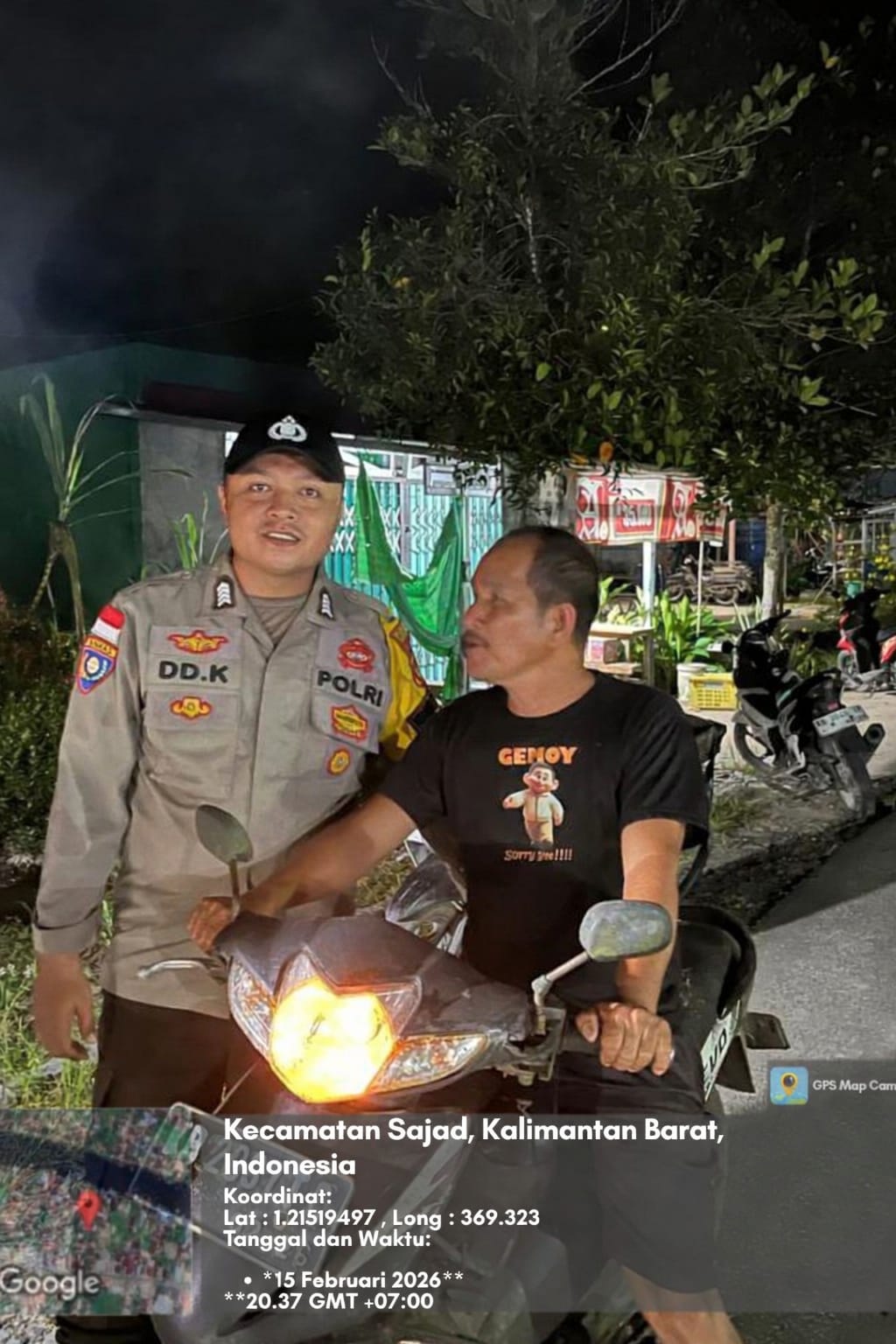 SAMBAS – Personel Polsek Sajad terus berupaya meningkatkan kesadaran masyarakat akan pentingnya keselamatan di jalan raya. Melalui giat Patroli Dialogis, petugas menyisir jalan raya dan pusat aktivitas warga untuk memberikan edukasi langsung mengenai kewajiban penggunaan helm saat berkendara, Minggu (15/02/2026).