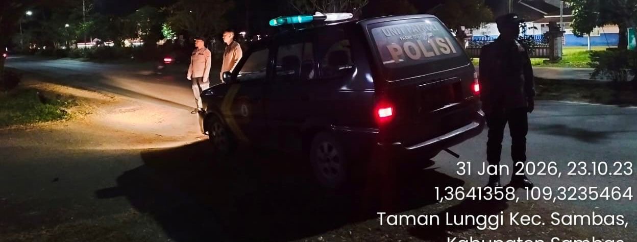 SAMBAS – Jajaran Polsek Sambas terus berkomitmen memberikan rasa aman kepada masyarakat melalui kegiatan patroli rutin yang dilakukan hingga malam hari. Pada Sabtu (31/01/2026), mulai pukul 22.30 hingga 23.20 WIB, personel Polsek Sambas melaksanakan pengawasan intensif di sejumlah objek vital guna memastikan situasi Kamtibmas tetap terkendali.