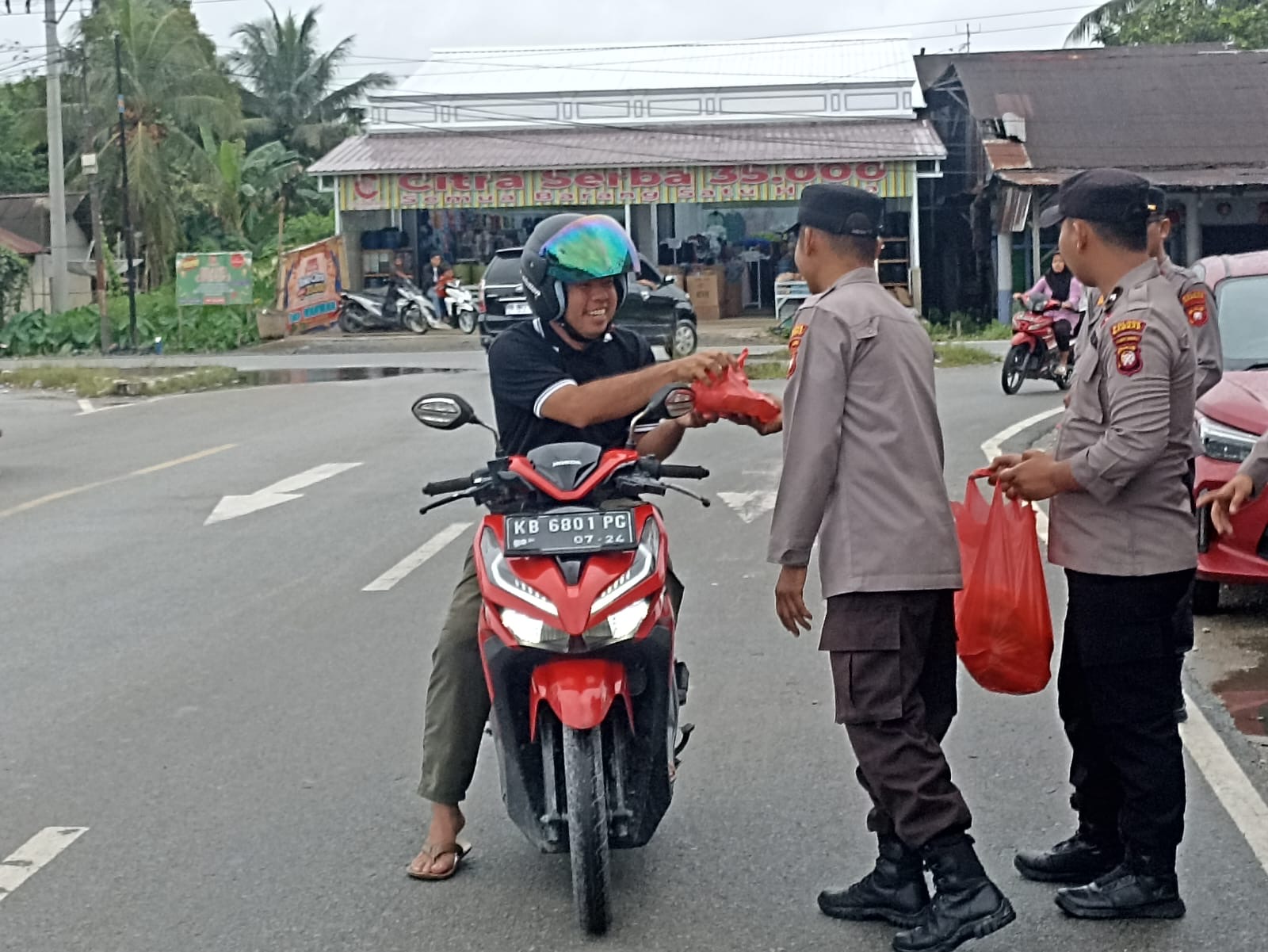 Dalam pelaksanaannya, Kapolsek bersama personel membagikan takjil secara langsung kepada masyarakat dengan tetap mengedepankan sikap humanis dan ramah.