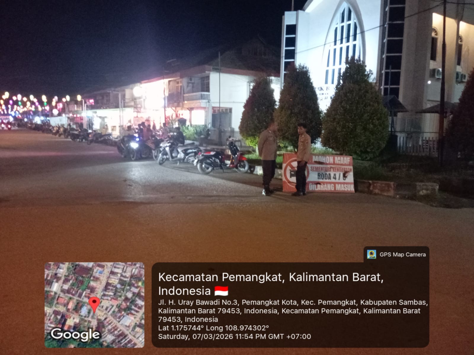 Guna menciptakan situasi kamtibmas yang aman dan kondusif pada bulan ramadan, Polsek Pemangkat Polres Sambas melaksanakan kegiatan patroli mencegah aktivitas balap liar dan aksi kriminalitas lainnya pada Sabtu (7/3/2026).