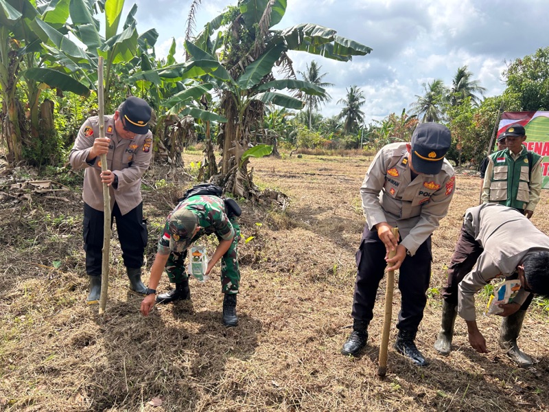 Dukung penguatan Swasembada Pangan, Kapolsek Pemangkat hadiri Penanaman Jagung di Desa Jelutung.