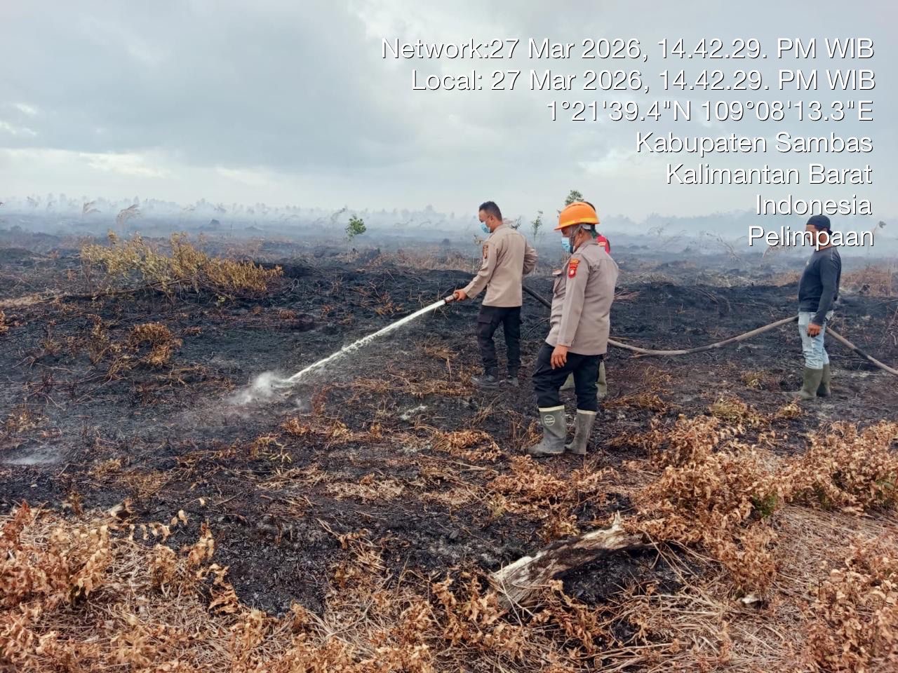 Kapolres Sambas, AKBP Wahyu Jati Wibowo, S.I.K., S.H., M.H., melalui Kapolsek Jawai, Iptu Beni Agus Trianto, SH mengatakan bahwa titik api terpantau di satelit NASA-NOAA20 pada Jum at 27/3/2026, sekitar pukul 10.14 WIB. Lokasi titik api berada di Desa Parit Setia dan Desa Pelimpaan Kec. Jawai dengan luas areal terbakar sekitar ± 2 s/d 3 Hektar.