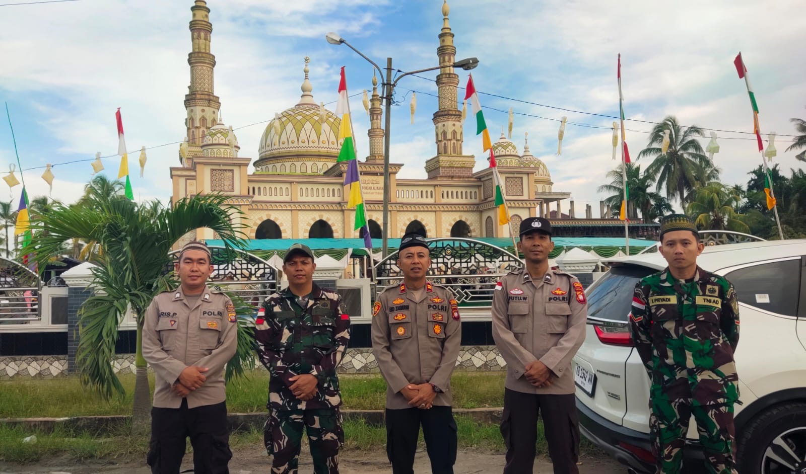 Pengamanan ini bekerja sama dengan jajaran terkait, termasuk unsur TNI, serta petugas pengamanan dalam (Pamdal). Kehadiran aparat gabungan bertujuan untuk memastikan kelancaran serta keamanan jalannya ibadah bagi masyarakat yang hadir.