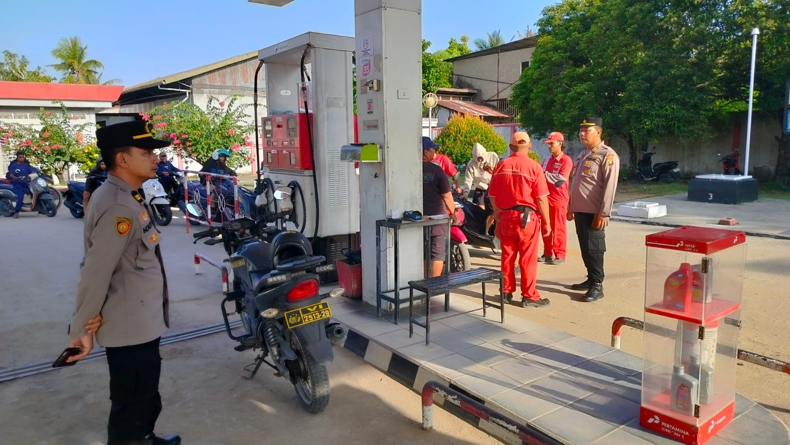 Kegiatan dilanjutkan pada pukul 05.00 WIB petugas telah sigap melaksanakan pengamanan dan pengaturan arus lalu lintas menjelang SPBU akan beroperasi pukul 06.00 WIB untuk memastikan tidak terjadi gangguan keamanan dan menimbulkan kemacetan.