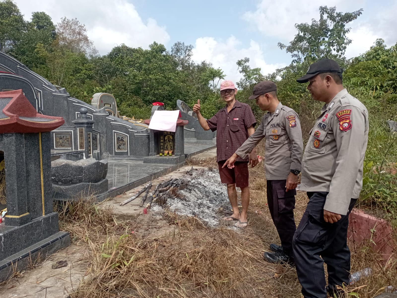Guna mengantisipasi potensi kebakaran hutan dan lahan (Karhutla), Polsek Pemangkat melaksanakan pengamanan intensif dalam prosesi ritual Sembahyang Kubur (Cheng Beng) di area pemakaman umum Tionghoa pada Minggu (29/3/2026).
