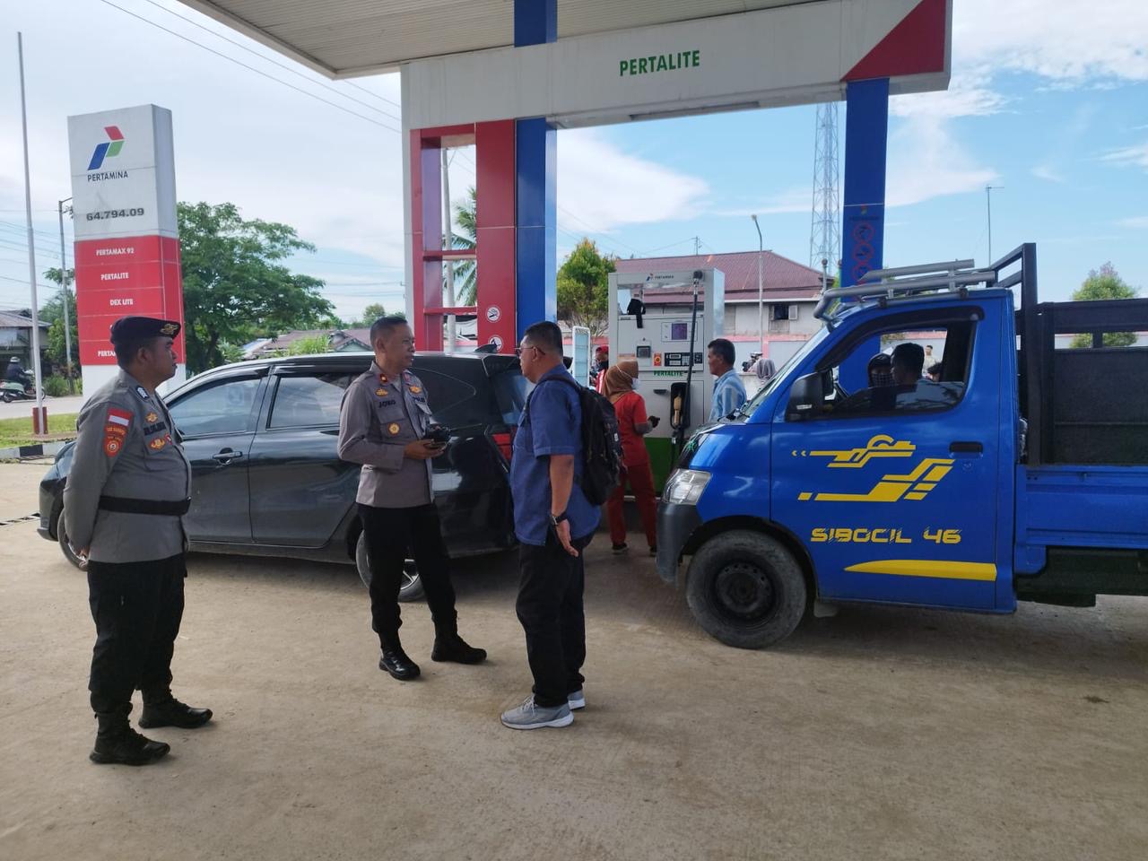 Selain aspek teknis, Kapolsek juga memberikan arahan kepada petugas SPBU dan personil pengamanan untuk mengatur alur kendaraan agar tidak terjadi penumpukan yang meluap ke jalan raya. Hal ini penting untuk menjaga kelancaran arus lalu lintas di sekitar area Kartiasa yang mulai mengalami peningkatan volume kendaraan.
