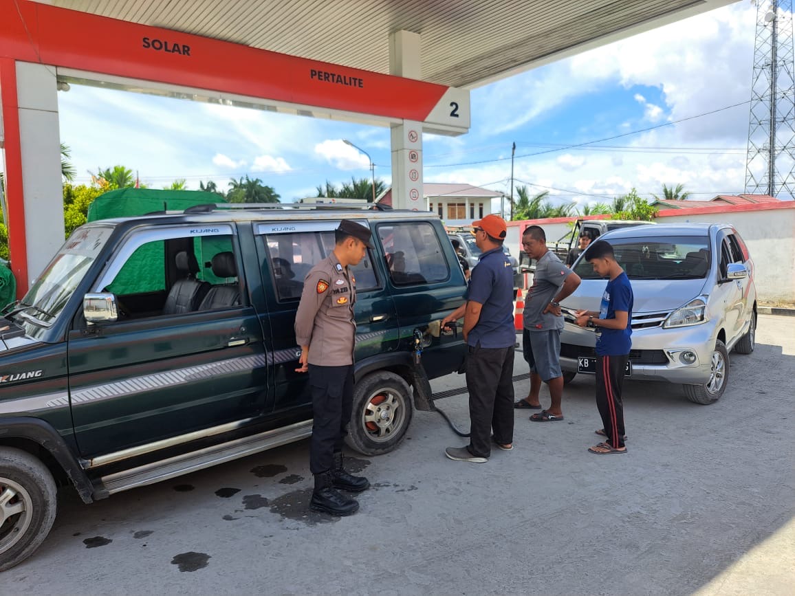 Pengamanan di SPBU untuk antisipasi gangguan keamanan dan memastikan masyarakat bertransaksi dengan aman, anggota juga memantau situasi keamanan di sekitar SPBU.