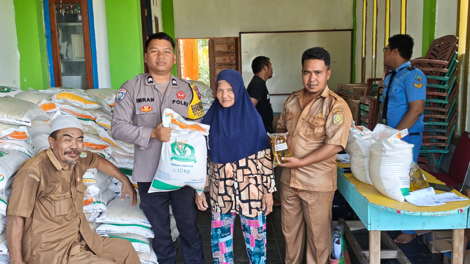 Bhabinkamtibmas Desa Matang Danau Polsek Paloh Kawal Penyaluran Bansos Beras Dan Minyak Goreng Kepada Warga