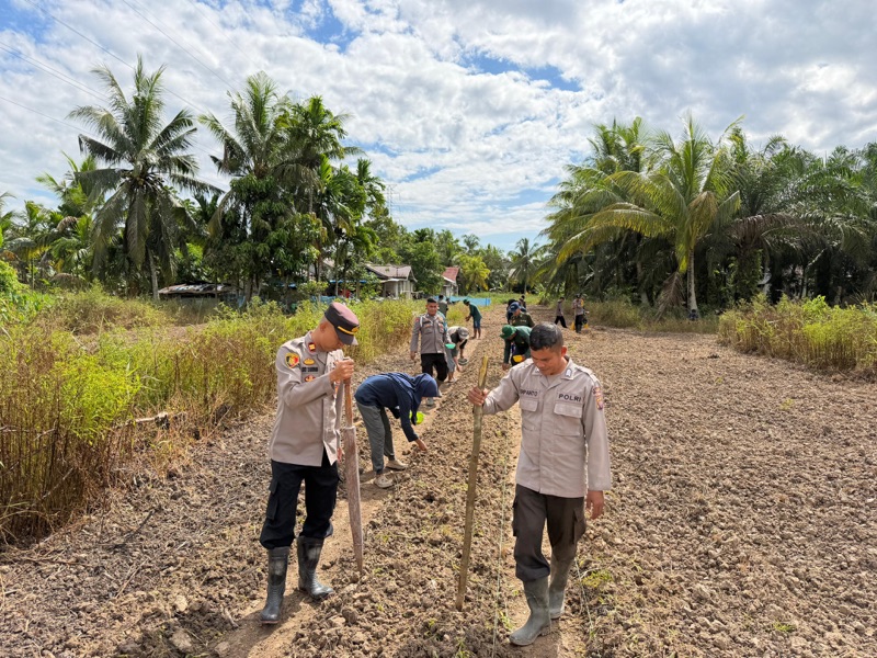 Dalam kegiatan tersebut, Kapolsek Tebas Iptu Eko Zaenudin , S.A.P.,M.H. didampingi oleh Para Kanit Polsek Tebas dan Bhabinkamtibmas serta Forkopimdes Desa Pusaka, . Kegiatan ini merupakan bentuk dukungan Polri terhadap program pemerintah dalam memperkuat ketahanan pangan serta mendorong masyarakat untuk memanfaatkan lahan yang ada secara produktif.