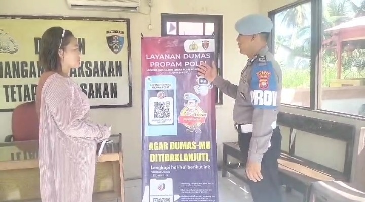 Dalam upaya meningkatkan pelayanan dan mempermudah masyarakat apabila ingin melaporkan pelanggaran yang dilakukan oleh personel Polri, Ps. Kanitpropam Polsek Pemangkat Aiptu Hidayat sosialisasikan layanan Dumas Online Propam Polri kepada masyarakat pada Kamis (16/4/2026).