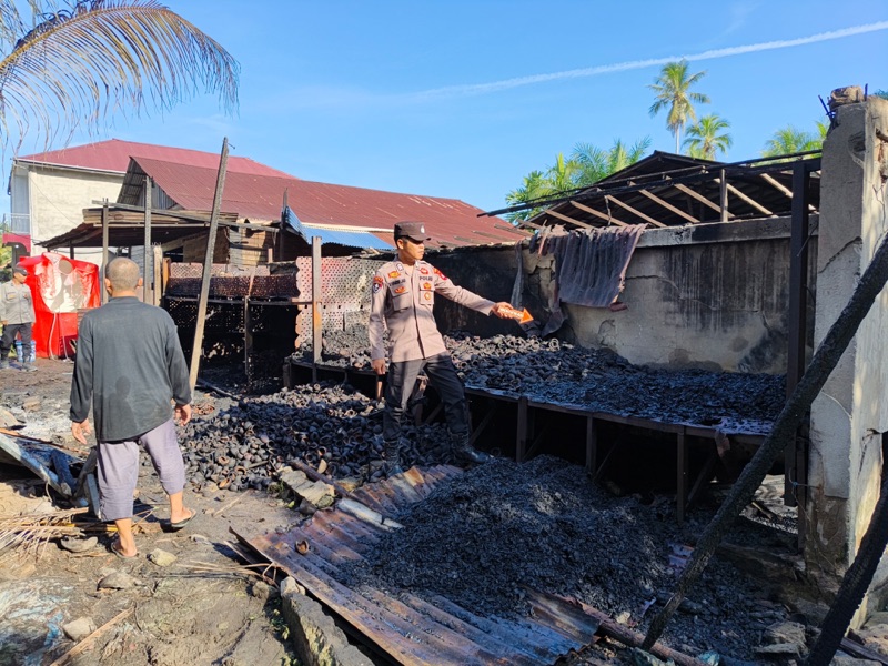 "Dalam peristiwa tersebut, tidak ada korban jiwa dan kerugian material diperkirakan mencapai Rp. 25 Juta, sedangkan penyebab pasti kebakaran masih dalam penyelidikan, diduga kuat api berasal dari arang batok kelapa yang tersimpan dibelakang bangunan dan korban telah mengikhlaskan kejadian tersebut sebagai musibah," ujarnya.